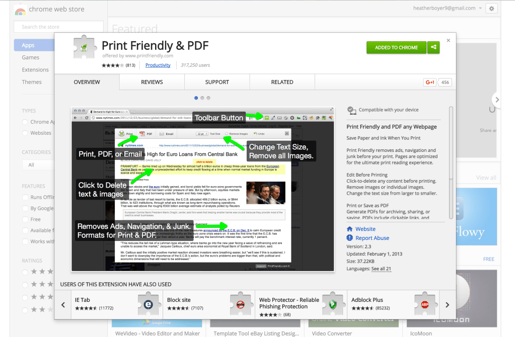 Once you are happy with how the content is laid out, simply press the pdf button at the top. If for some reason you would want to print it out, you have that option, as well. Like I said, this tool does a nice job of laying out the content and leaving out unnecessary content, so it can be useful for creating nicely laid out print pages, as well.