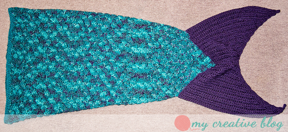 This is my take on the mermaid tail blanket. Since I have no daughters, I had to make one for myself. I was going to attempt one in the crocodile stitch, but since I wanted to complete it over the Christmas holiday break, I decided to go for a simpler design that still had some texture to it. I opted for the design by YARNutopia By Nadia Fuad which uses shells, and I modified it slightly to make it double-stranded. I also modified the fin from the Emma-Noel Mermaid Tail to make it double-stranded. I like it double-stranded because it makes the blanket feel even more cushy and warm, although, it uses a lot of yarn this way.