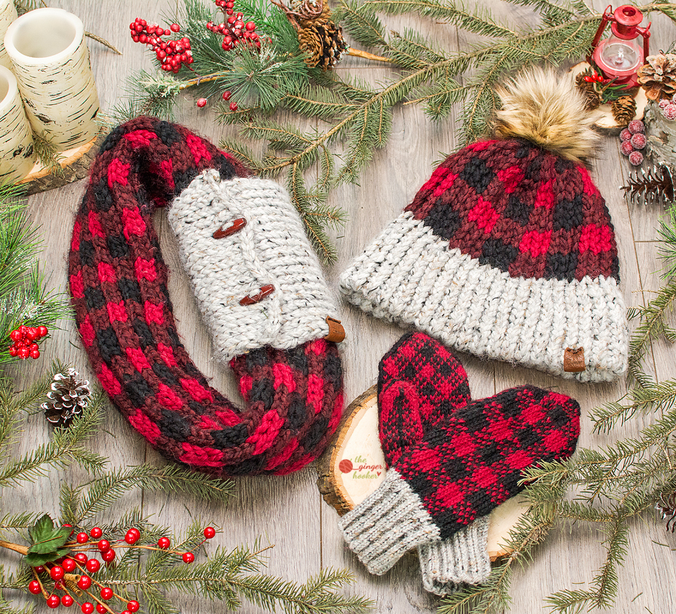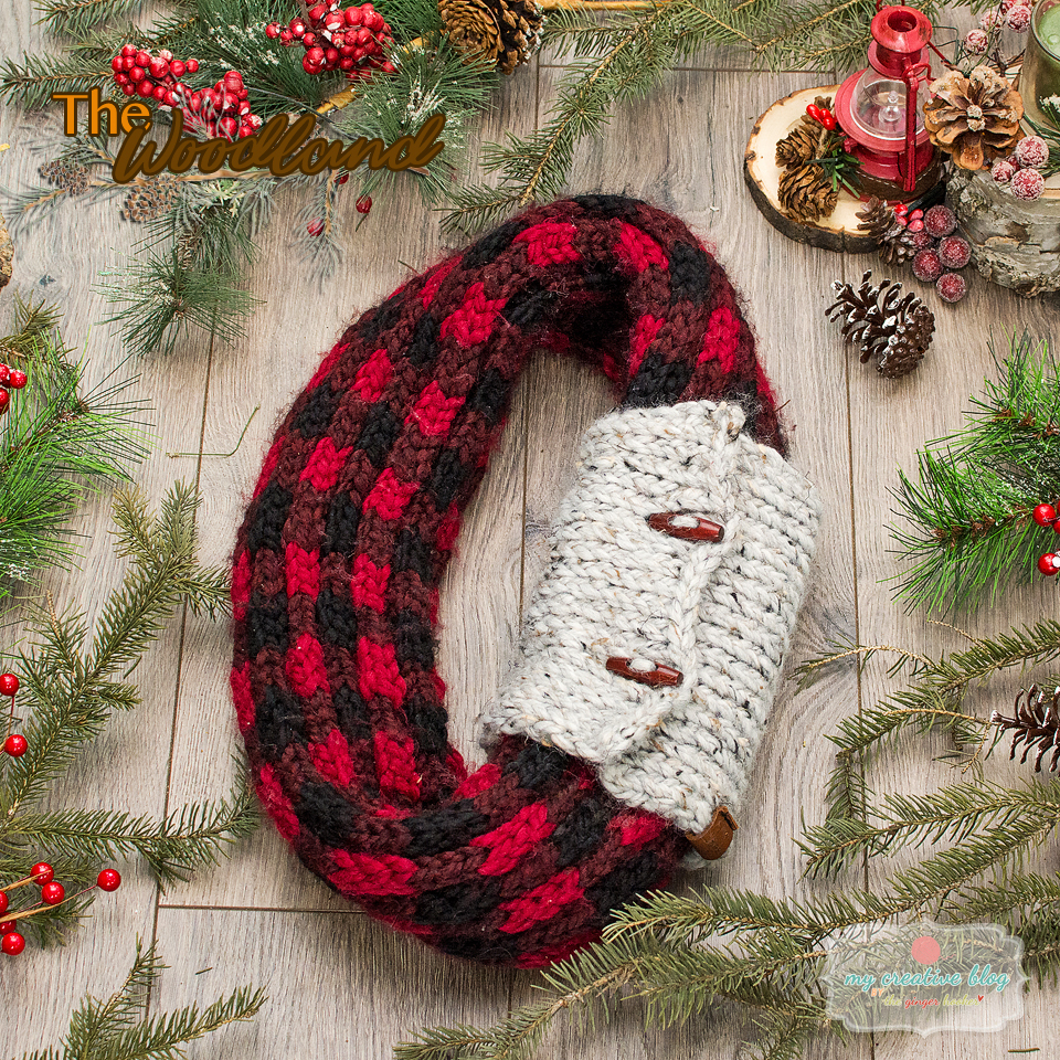 I wanted a cozy scarf to go with my beautiful True North Toque and The Lumberjill Mittens, and I was so indecisive about how I wanted it to look. I tried working it up in multiple ways and frogging many times, finally I settled on a tube scarf because it gives it the cozy, thick feel, as well as, hiding all your floats from working the plaid pattern. As you’ll find below, I was still a bit indecisive on how I wanted it to look but I shared the multiple ways you can work it up below with a simple change to the pattern. This scarf doesn’t use too much yarn either, less than a skein in each color, which is nice on the bank. I hope you find it as cozy as I do and enjoy this pattern!