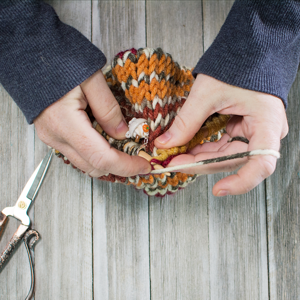 Pull tail through remaining stitches and pull tight to close circle. FO.