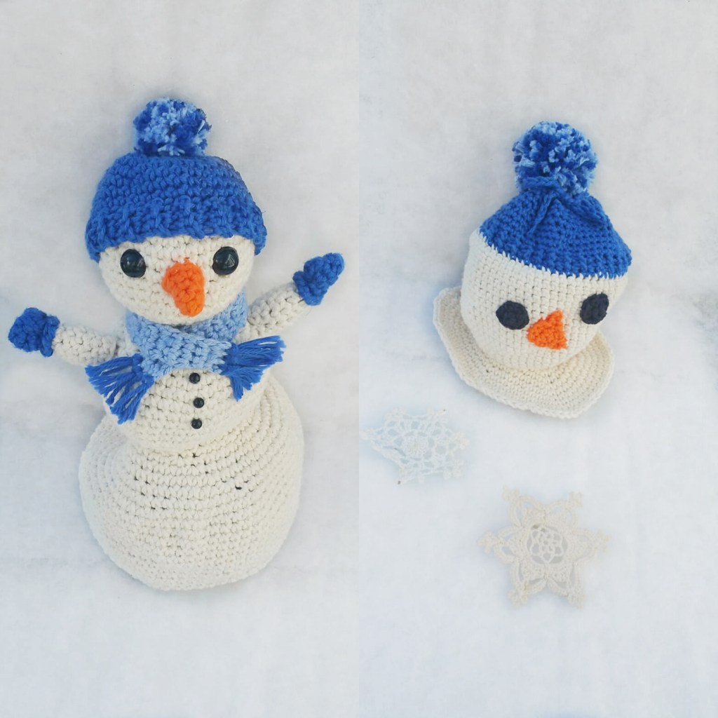 I love snowmen! They are my absolute favorite thing about winter (I get it from my momma), so I just knew I needed to make snowman doll to go in my topsy-turvy doll collection. I started planning this doll back when I made my Queen Bee-Hive Doll. I knew I wanted to make a seasons collection and therefore needed a doll that very much said winter to add to that collection. This pattern has probably been one of my most intense pattern I’ve designed, and I wanted it to be perfect. Sometimes designs just seem to design themselves while others need a lot more work and this pattern is was definitely the latter, but it was completely worth it for the final result! I hope you enjoy this pattern as much as I enjoyed creating it!